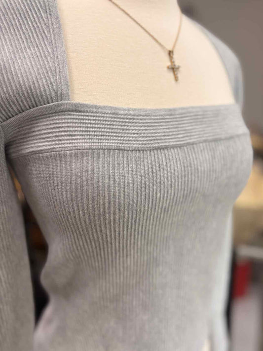 Women's Women Size M Gray Babaton Ribbed Square Long Sleeve Shirt