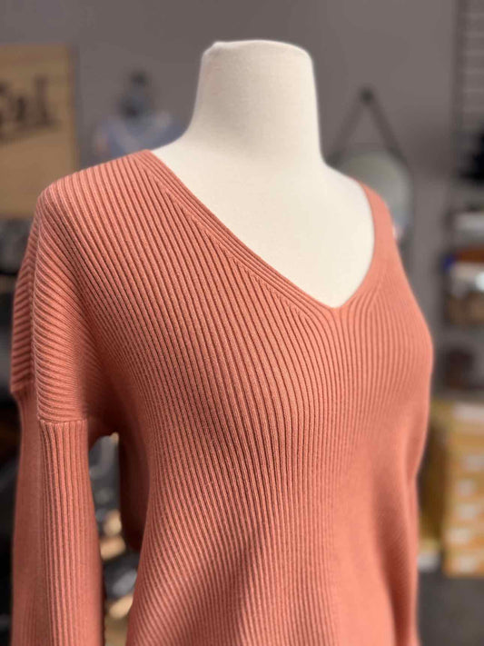 Women's Women Size S Burnt Orange Thread & Supply Ribbed V-Neck Shirt