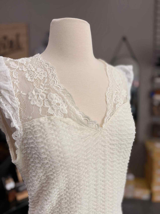 Women's Women Size L Cream Shein V-Neck Short Sleeve Shirt