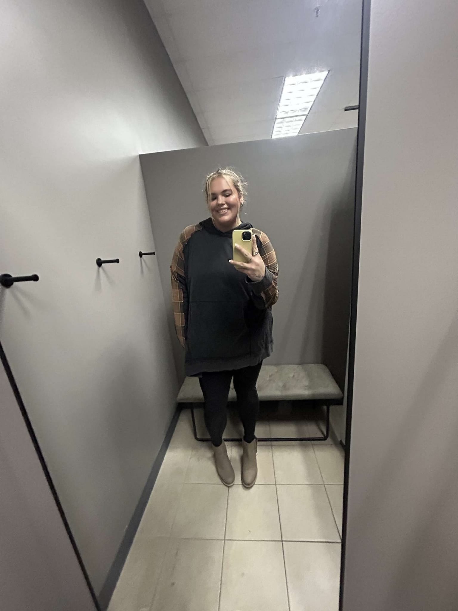 Plus Size Tunic Length Plaid Combo Hoodie