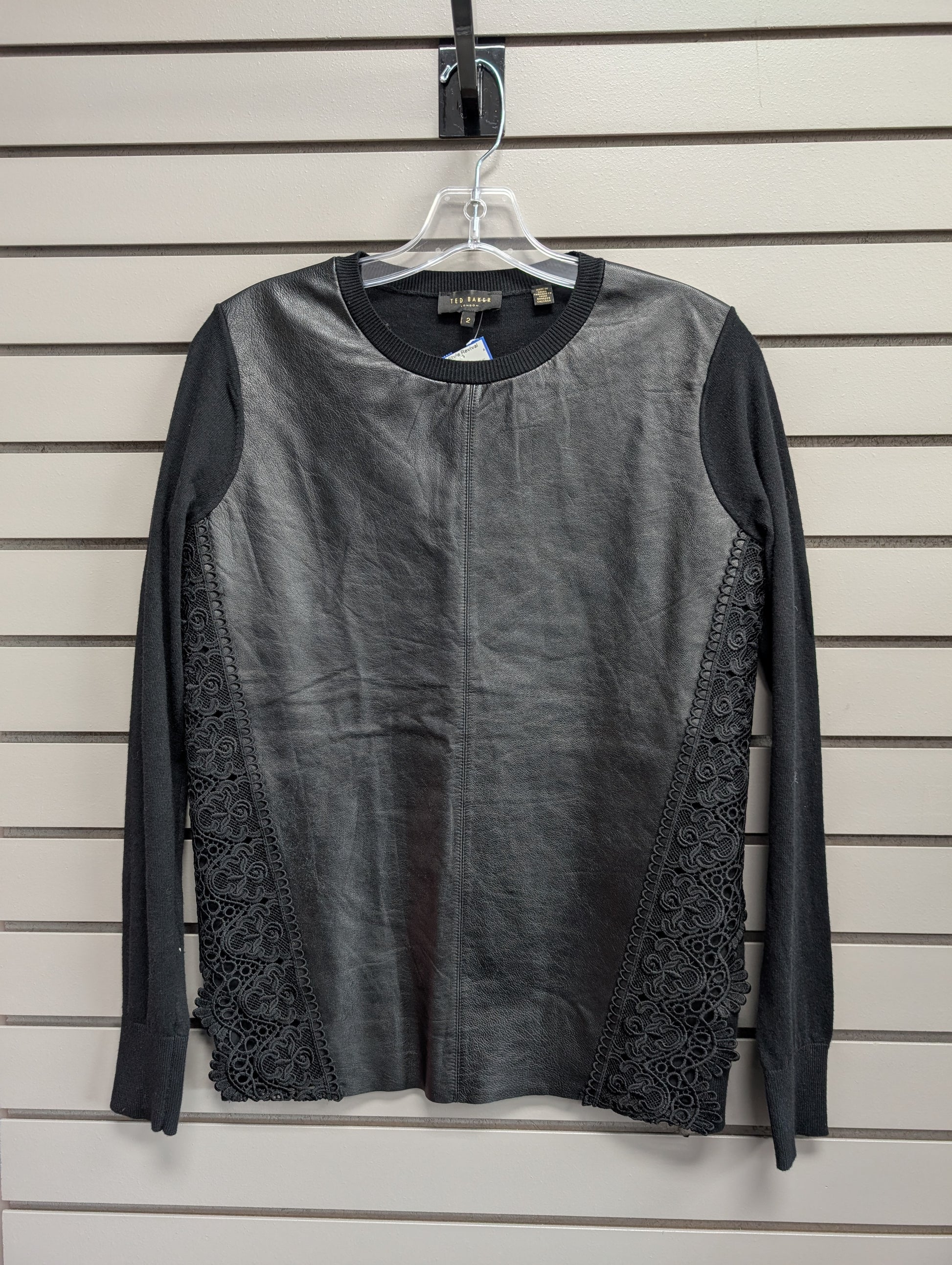Women's Women Size 2 Black Ted Baker Leather Long Sleeve Shirt