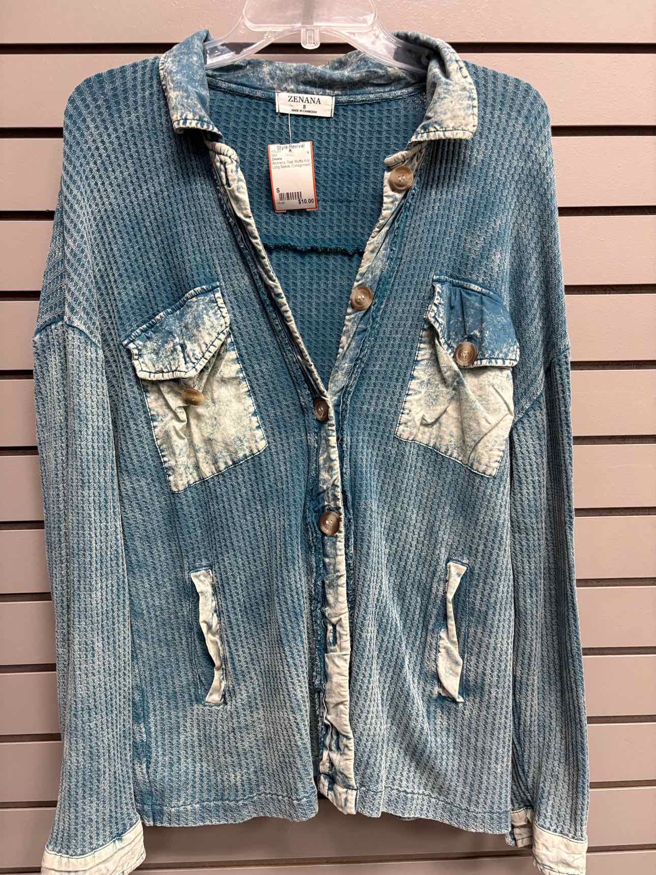 Women's Women Size S Teal Zenana Waffle Knit Long Sleeve Shirt